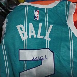 bran's new teal colored Charlotte hornets autographed authentic jersey player is Balz number 2 size medium