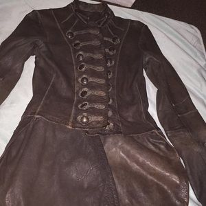 Authentic elegant Allsaints leather jacket. The style is unique in it self it an old English vintage neat style it's a size small and In great condition also the leather get better with time.