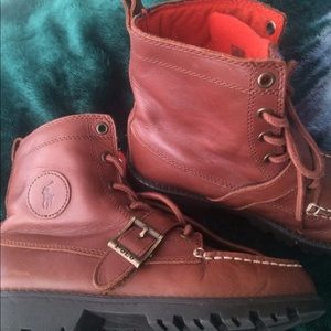 These authentic Polo boots are leather, in good condition and are very comfortable. Warm on the inside and perfect for cute winter wear.
