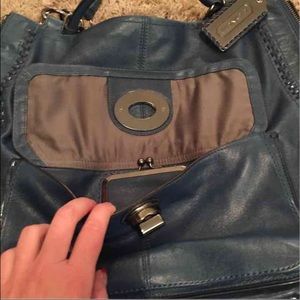 Blue leather, hard to find coach shoulder bag. 100% authentic. It is leather so it is heavy