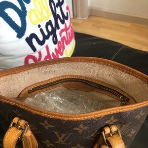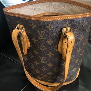 Still in good condition authentic lv bucket bag with small chain insude to attach keys or coin purse . Its one of the bags i bought from my friend coz of this pandemic, but got many bags, so just wanna get what i paid for on this too. No inclusions. Flaws in the interior as shown in pics.