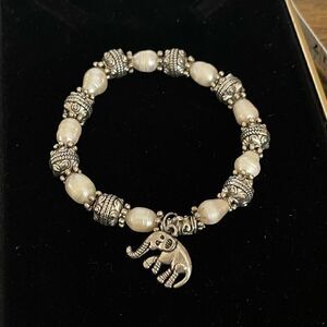 It is a stretchy bracelet, the pearls are real. It’s in good condition.