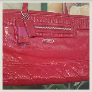 Authentic leather like red Coach purse. Cute & sassy, will snazz up any outfit. Spacious & easy to clean!