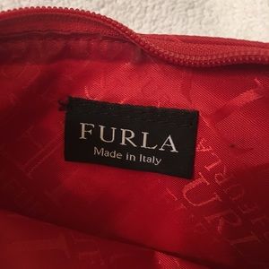 Small red Furla purse; little signs of wear on the straps (see pic 5), barely noticeable.