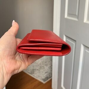 Authentic red sleek leather Céline long continental wallet in used condition.