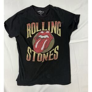 The product is an authentic Rolling Stones black tee with rhinestones, made of 100% cotton knit fabric. It is machine washable and designed for women with a casual sleeve style. The tee features rhinestone accents and is branded as authentic, perfect for those who appreciate rock and music themes in their clothing. Made in Bangladesh, this versatile t-shirt can be worn in all seasons, adding a touch of music-inspired style to any outfit.