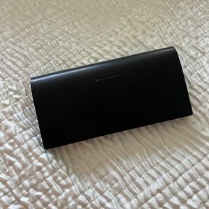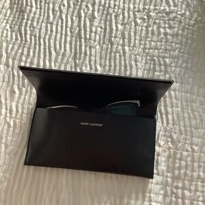 Brand New never used Authentic Saint Laurent multipurpose case. Color Black. Can be used as a eyeglasses or sunglasses case however can be used as a document and iPhone case. See pictures fits sunglasses but I was also able to fit an iPhone a card holder and some cash. Very practical and has a beautiful sleek design with lenght long seemless magnet secure closure inside. Saint Laurent printed both on the front and inside part. Perfect when you just got to run and do an errand and don’t want to bring a bag but have the essentials like phone card holder and money in one place and then switch it up as a sunglasses/ eyeglasses case when needed. In perfect condition.