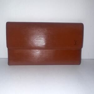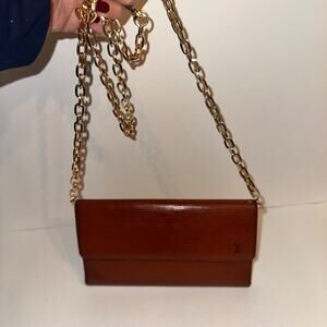 Authentic Vintage Louis Vuitton Brown Epi Leather Long Wallet – With aftermarket Free Chain