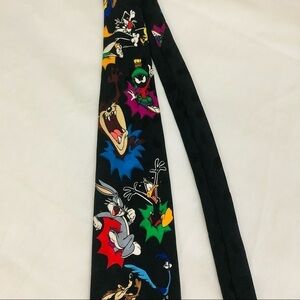 Authentic vintage Looney Tunes black silk tie featuring bugs bunny and the gang. 57” long. In excellent condition.