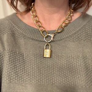 Number on lock is 320. Comes with idlewild box, free unbranded vintage chain, and name tag. Necklace is gold tone with silver clasp.