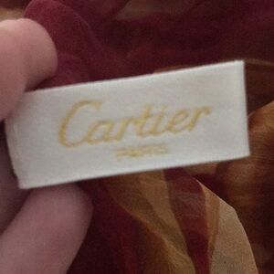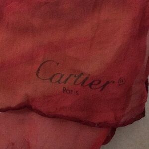 Beautiful Cartier scarf- perfect for any season- to wear or tie a big bow on your hand bag. This is my moms- she’s had at about as long as I’ve been alive and it has no pulls, stains, or snags. Excellent condition. I do not have the box for it however I will ship it in a generic dust bag. Will ship out same business day, from a smoke free home.