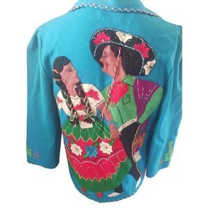 Authentic vintage felted wool open front jacket heavily Embroidered first people