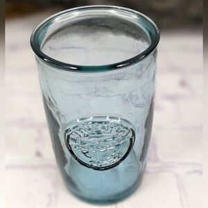 Crafted in Spain from 100% recycled glass and featuring a decorative embossed stamp of authenticity, these exclusive tall drinking glasses have an attractive blue tint and simple, weighty design.