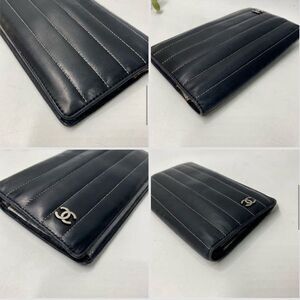 Authentic CHANEL Quilted Bifold Long Wallet Black