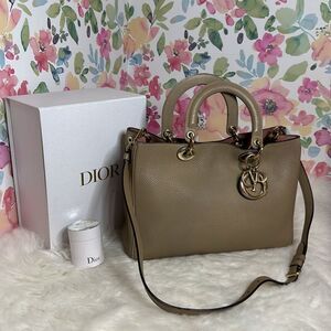 💯Authentic Dior Beige Leather Medium Diorissimo Shopper Tote🍀