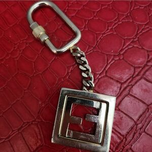 Authentic Fendi Silver tone Key Fob with the FF logo, can be attached to a Fendi handbag used as a purse charm as well. Pre owned condition with a few scratches but still in good condition.