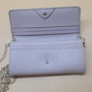 The outer leather showed sign of used with scratches, stains ere & there & around d corners. The removable golden chain & 2 D rings are added in ( not Fendi original) & approx 48", the wallet can be worn as crossbody. Inside wallet has some stains, spots, scratches, 12 card slots, 6 billfold, a coin with full zipper pocket ( dirt stains inside). Color: pink rose. No serial numbers found. It made in Italy. Dimensions ( approx) 7.25, 4, .5". No trade.