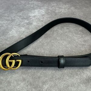 Authentic Gucci Black Leather Slim GG Marmont Belt 409417 80/32