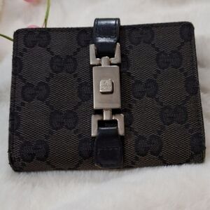 Authentic Gucci GG Logo Jackie Canvas/leather bifold wallet. Change compartment has residue. Wallet is vintage with wear