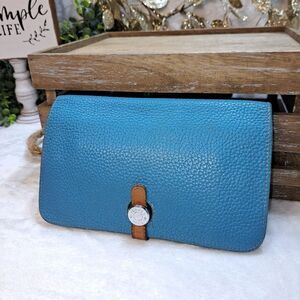 Beautiful Hermes flap fold wallet. Color is stunning, and the leather is so soft. Silver tone Paladium hardware.