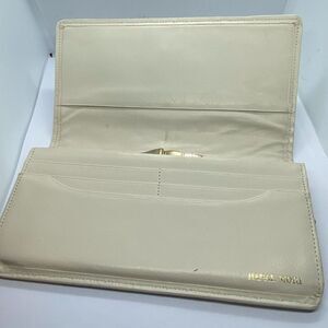 Authentic Hanae Mori Luxury Ivory Fabric & Leather Long Bifold Clutch Wallet