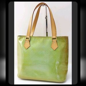 Authentic LOUIS VUITTON Houston Baby Blue (Green) Vernis Tote Bag Purse