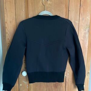 Louis Vuitton black textured uniform jacket worn by employees. Made of wool and nylon blend and has silver metal buttons on front with logo and front ribbed hemline and cuffs. Authentic and in excellent condition
