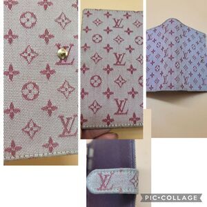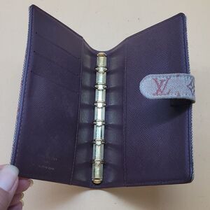 The outer canvas showed sign of used with stains, spots, marks (5th photo). The hardwares have some scratches & stains. Inside has some scratches, stains, rings marks, 3 card slots, & 2 billfold. Please review the last photo for date code. It made in Spain. Dimensions ( approx) 5.5, 4, .5". No trade.