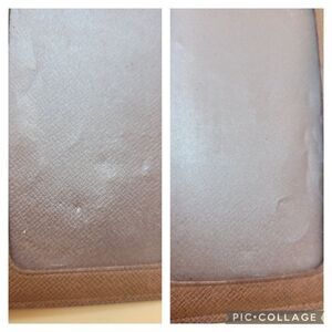 Outer leather is in good pre-owned condition. Inside wallet has some scratches & a spot, the vinyl have some scratches & cracks. 2 card slots, nice and clean inside. Please review the last photo for date code. It made in France. No trade.