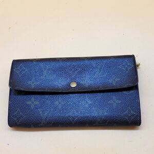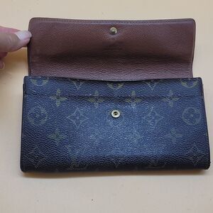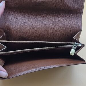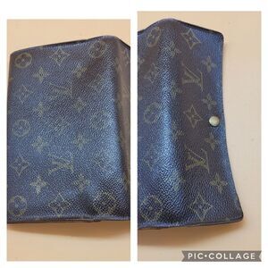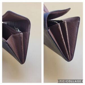 The outer leather showed sign of used with scratches, curling edges, & tiny cracks on top corners. The hardwares are tarnished. Inside wallet has some scratches, bubbles, crooks, 2 outer card slots, 2 billfold, coin pocket with full zipper ( dirt stains inside). Please review the last photo for date code. It made in France. Dimensions ( approx) 7.25, 4.25, .5". No trade.
