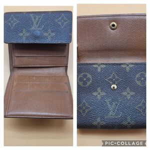 The outer leather is in good pre-owned condition. The hardwares are tarnished. Inside wallet has some scratches, marks, stains, 1 billfold, 6 card slots, a coin pocket on the back ( peeled, dirt stains on all pockets & slots, 6th, 7th photos). Please review the last photo for date code. It made in France. Dimensions ( approx) 4.25, 4, .5". No trade.