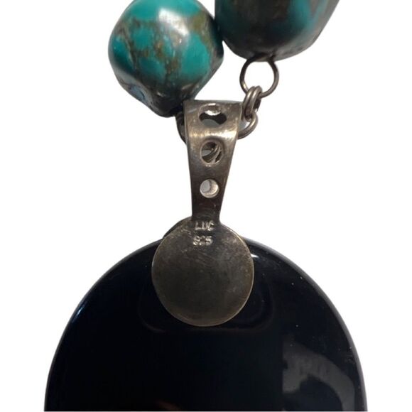 Authentic Lucas Lameth 925 Silver Natural Turquoise & Black Onyx Necklace