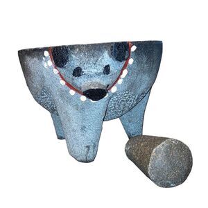 Authentic Mexican Heavyweight Lava Volcanic Rock Stone Mortar and Pestle Dog Pig