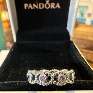 Authentic Pandora Her Majesty Ring Stackable Ring, Purple CZ SIZE 7 (54)