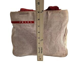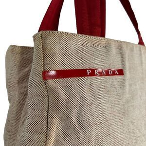 Authentic Prada Canvas Tote w/Beige & Red Tint w Logo Handbag