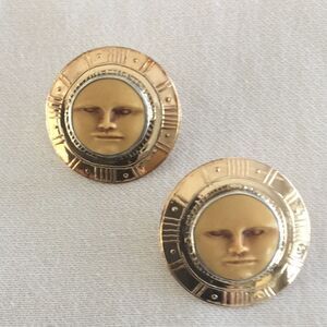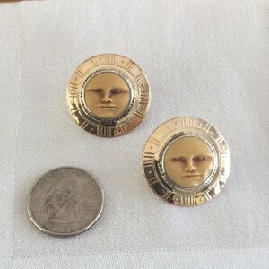Serious vintage earrings, signed. Marked 14k. They are 1 1/8” round. The moon goddess is surrounded by silver.