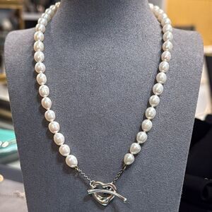 Authentic Tiffany & Co. Elsa Peretti open heart Sterling Silver freshwater pearl necklace 16”