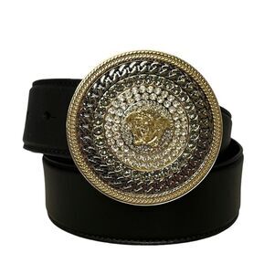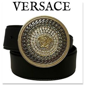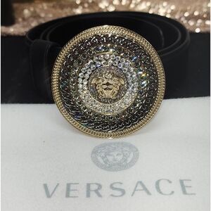 Authentic VERSACE Crystal Medusa Buckle Belt w/ Dust Bag and pouchette