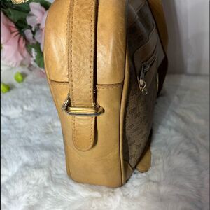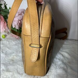 This Vintage Gucci Bag features canvas and leather structure with zip top closure and a front zipper pocket. The interior features a zip pocket.