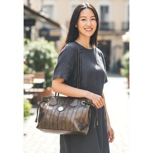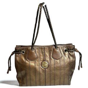 Fabulous authentic bag in excellent condition! Done in metallic bronze/brown leather with tonal stitching and braided straps.