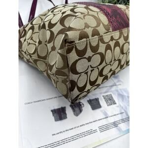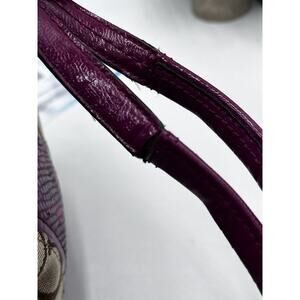 Authenticated F25706 raspberry snakeskin striped tan and brown signature logo tote bag