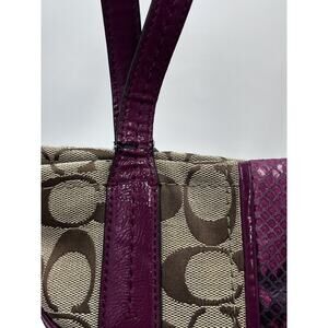 Authenticated F25706 Raspberry Snakeskin Tan Brown Signature Logo Tote Bag