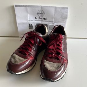 Authenticated Louis Vuitton Burgundy Suede Run Away Sneakers Men's Size 8/US 9