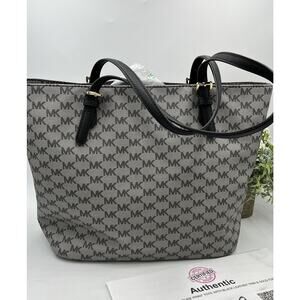 Authenticated Michael kors Gray Black Signature Logo Leather Trim Tech Tote Bag