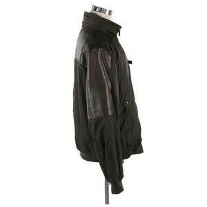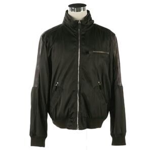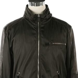 Elevate your wardrobe with this authentic Prada men's bomber jacket. Crafted from a luxurious blend of dark brown nylon and leather, this designer piece exudes sophistication and style. The jacket is in excellent condition and comes from a smoke-free home.