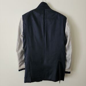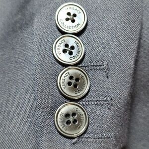 * Condition: fair condition, has multiple tiny damages of the material, most of them on the front and back bottoms, one on the lapel; slightly shiny elbows; the flaws are noticeable, but not overly noticeable (please check all photos before buying)