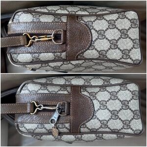 Authentic Vintage Gucci Web Brown Monogram Coated Canvas Leather Shoulder Satchel Bag.
