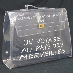 Authenticity Guarantee HERMES Vinyl Kelly Beach Hand Bag SOUVENIR DE L'EXPOSITI