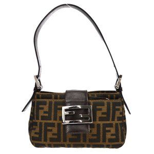 Authenticity Guaranteed FENDI Zucca Pattern Mini Handbag Brown Canvas