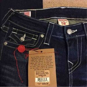Becky style with swarski Crystals. Brand new! The tags were cut off when I went in to get them hemmed! But I still have them so that's why they're listed as NWT. They have the original hem and can be taken down because they were never cut. I would not be selling these if they weren't too big on me